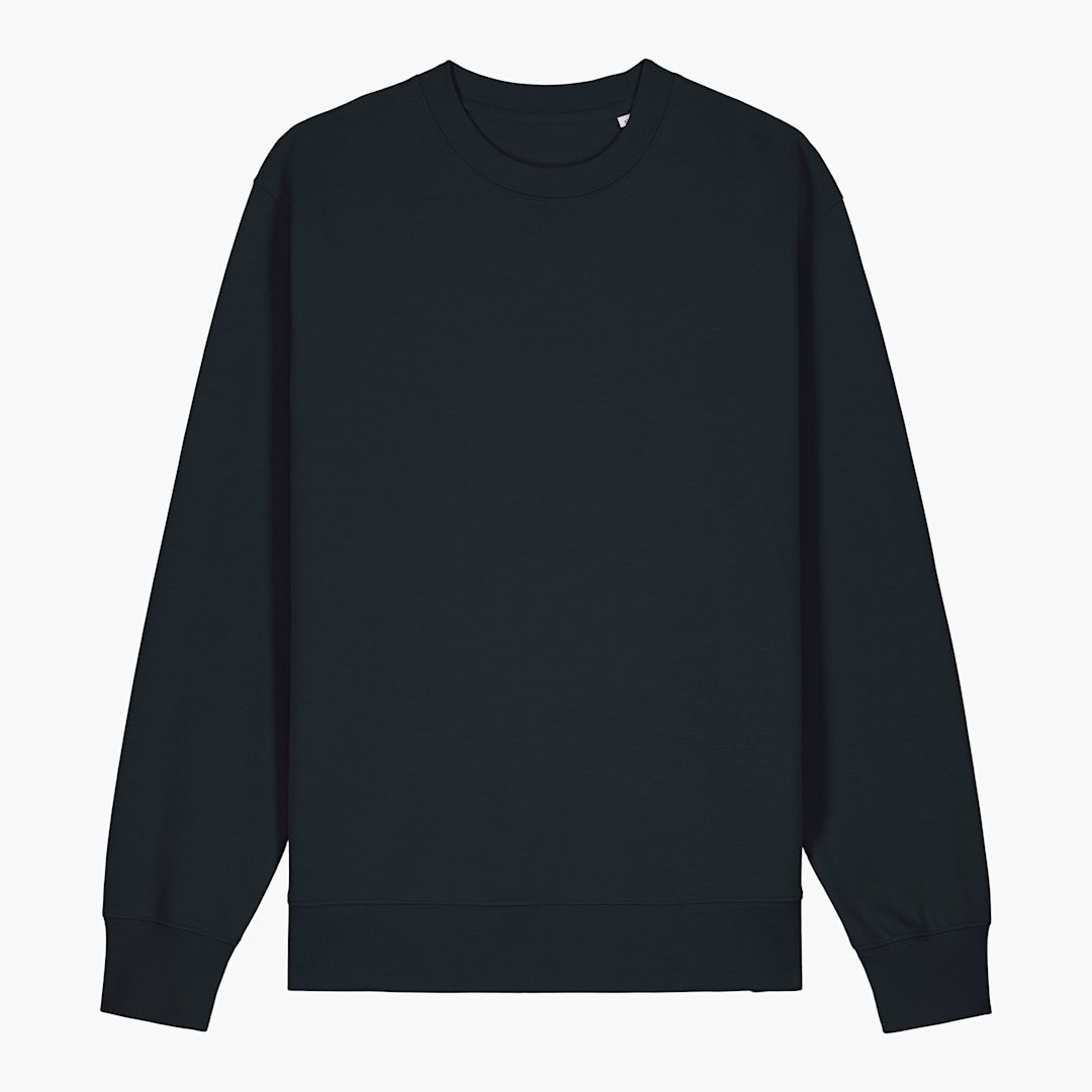 Unisex crew neck sweatshirt. 100% brushed cotton - Organic Ring Spun Combed, Fabric washed, 350 GSM. Self fabric Half moon at back neck. Single needle topstitch at neck collar. 2 needle topstitch centred on seam at hem, cuff and armhole.
