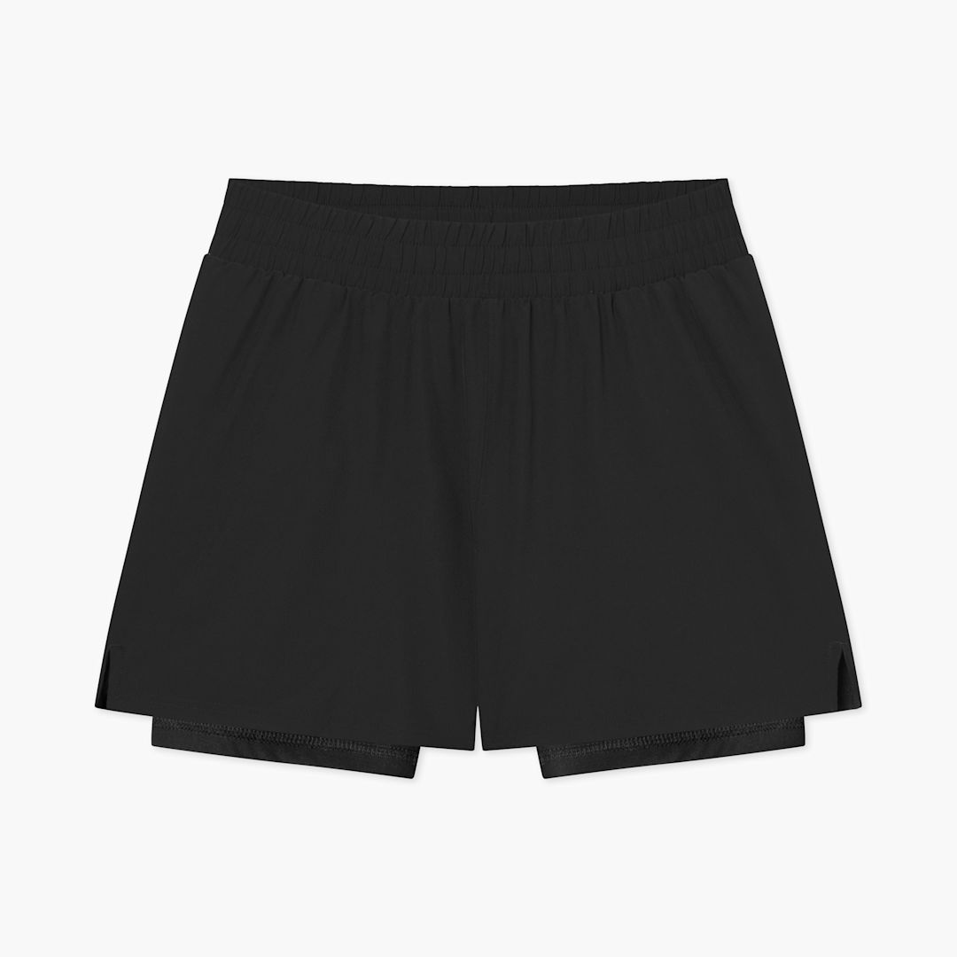 Microfiber shorts with 4-way stretch, 120gsm, polyester interlock inner shorts. Two layers. Side pockets with zip and piping. Self-fabric waistband with internal drawstring. Side slits. Integrated inner shorts. RHS certified phone pocket on inner shorts. Outer: 90% polyester + 10% elastane. Lining: 88% polyester + 12% elastane.