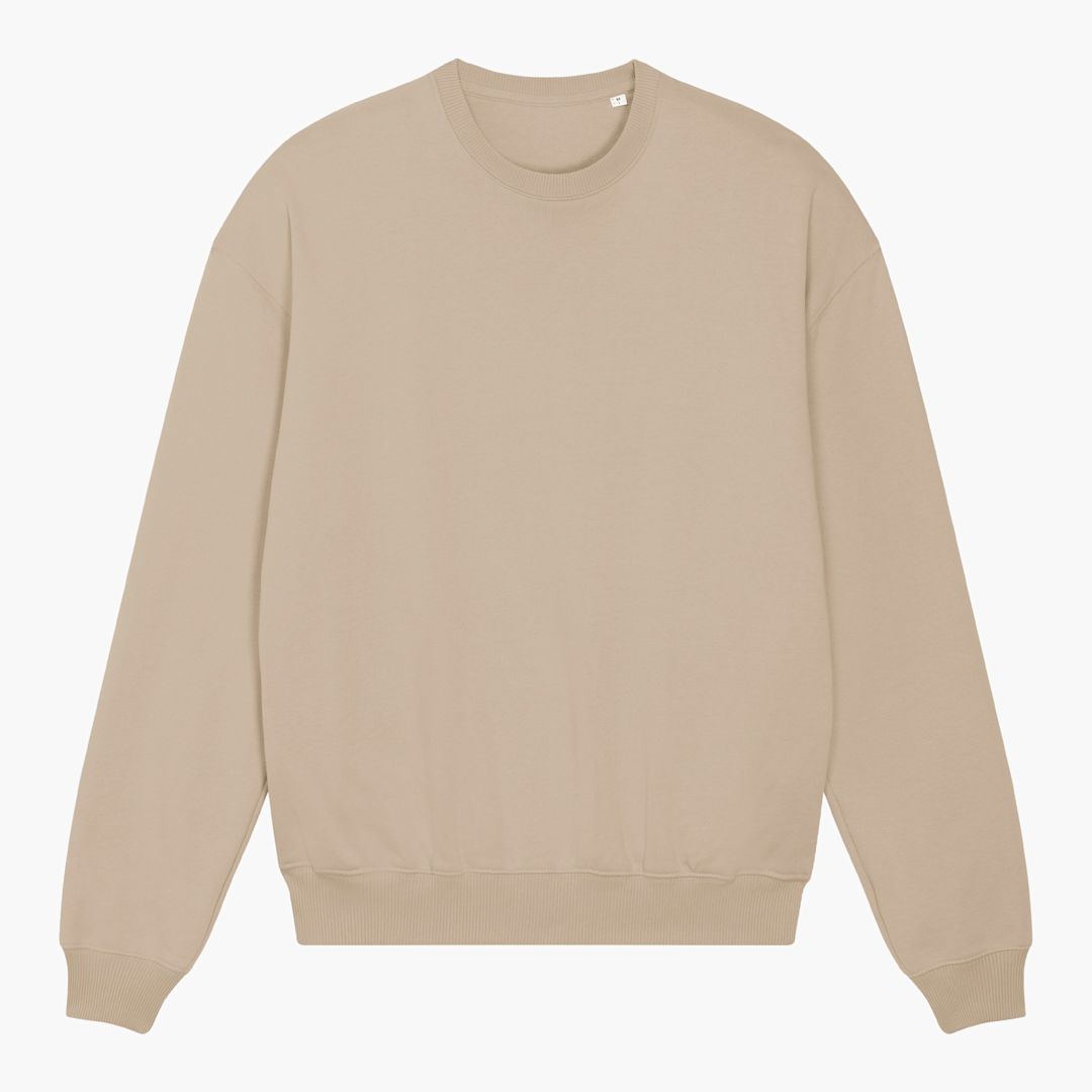 unisex boxy dry hand feel sweatshirt. 400gsm. 100% organic french terry cotton. set-in sleeve. 2x1 rib at sleeve hem and bottom hem. Armhole, sleeve hem and bottom hem with twin needle topstitch.