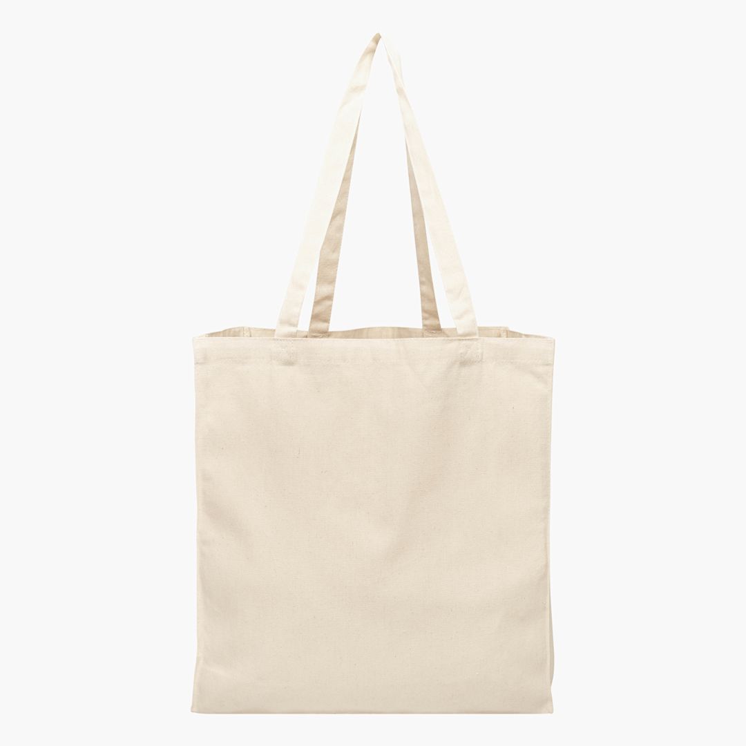 Tote bag crafted from 100% cotton . 250-300gsm. Long handle: 66 cm x 2,5 cm. wide flat bottom and sides.