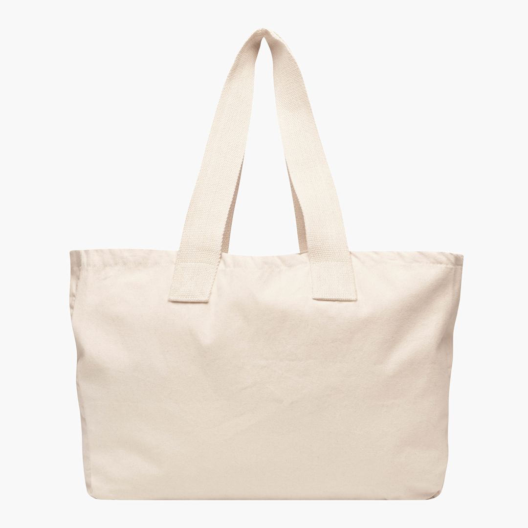 100% cotton. 340gsm. wide handles.