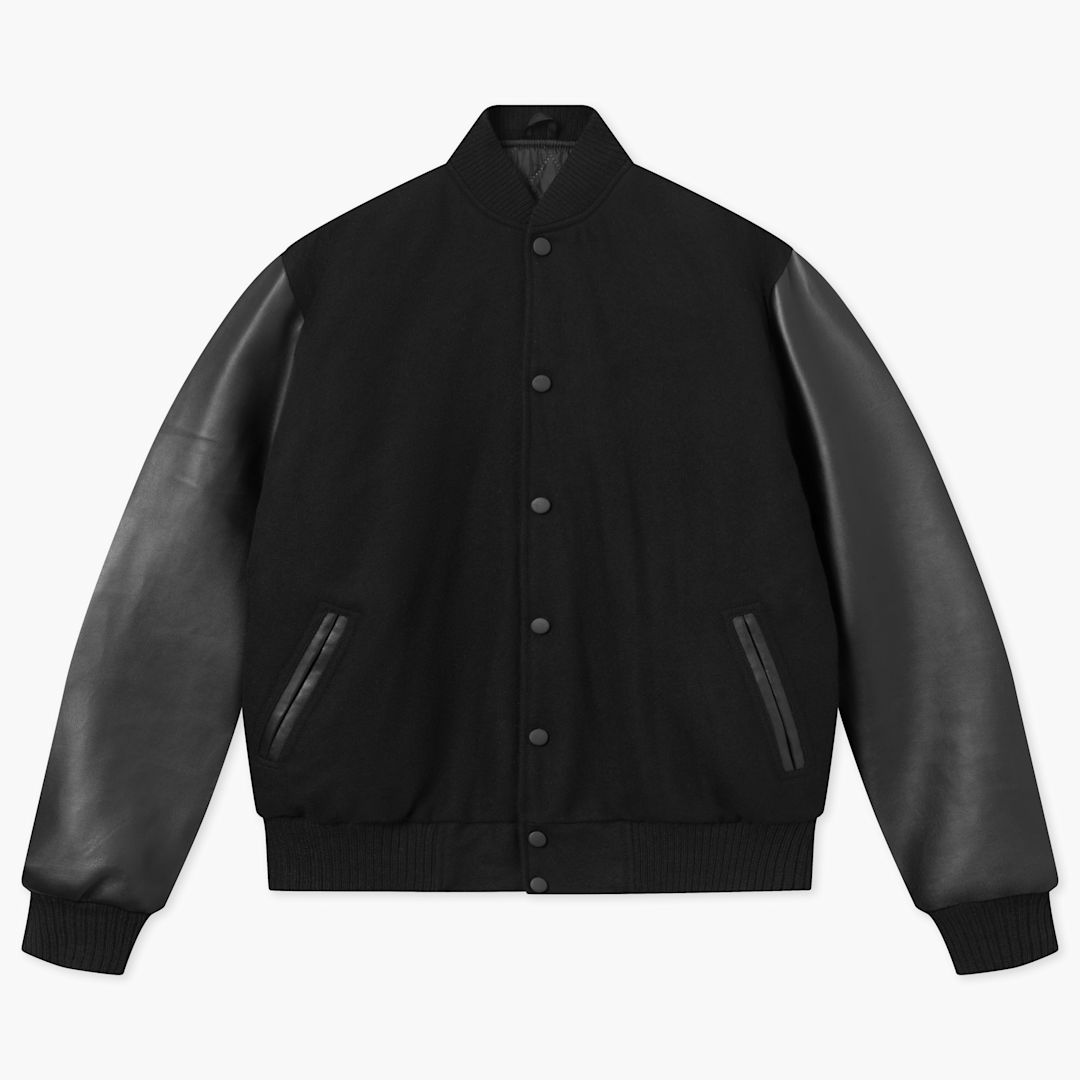 collage jacket production. can be made in pu leather or real leather. choose from a wide range of colors. body made of wool. can be decorated with patches and different types of embroideries.