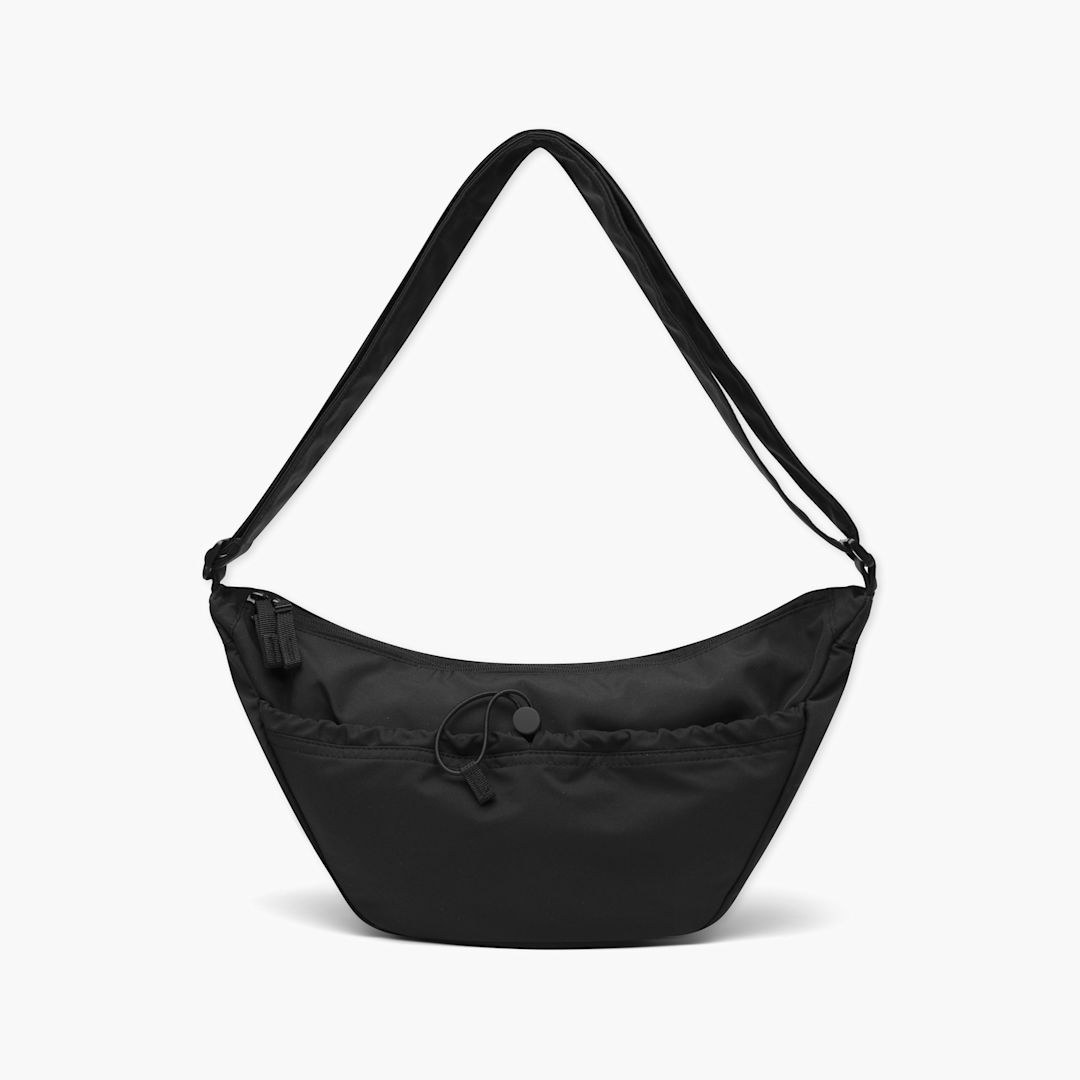 100% Recycled Polyester T400D. Water repellent fabric. Two-way zippered opening for easy access External front pocket with cord adjuster. Two internal padded slip pockets. Self-fabric adjustable shoulder strap.