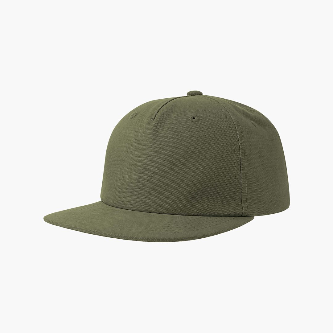 Unstructured 5-panel cap made of a blend of recycled (20%) and organic( 80%) cotton canvas. It features a flat visor and a recycled snapback closure.