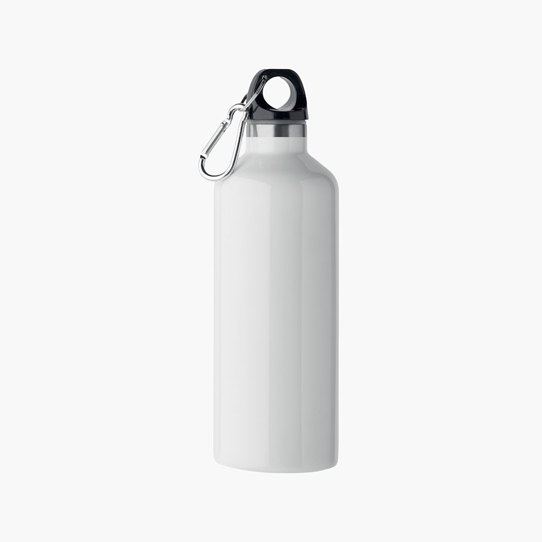 Double-wall vacuum insulated bottle in recycled stainless steel (90% recycled stainless steel and 10% stainless steel) with lid and carabiner. The carabiner is not intended for climbing (not professional use). Leak free. 500 ml.