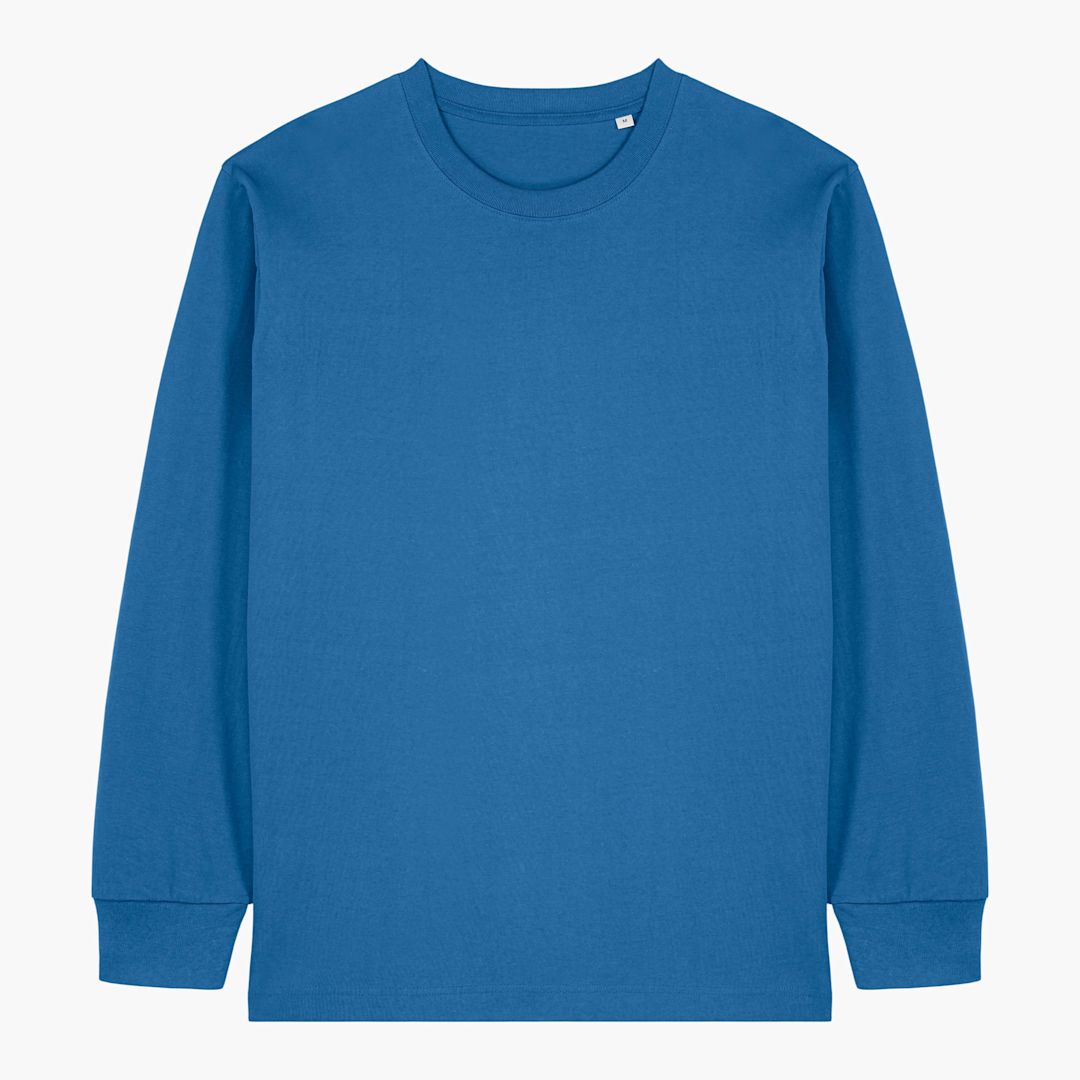 unisex heavy weigth long sleeve t-shirt. Relaxed fit. Double needles topstitches at sleeve cuffs and bottom hem. single jersey. 100% organic cotton. 240 GSM.