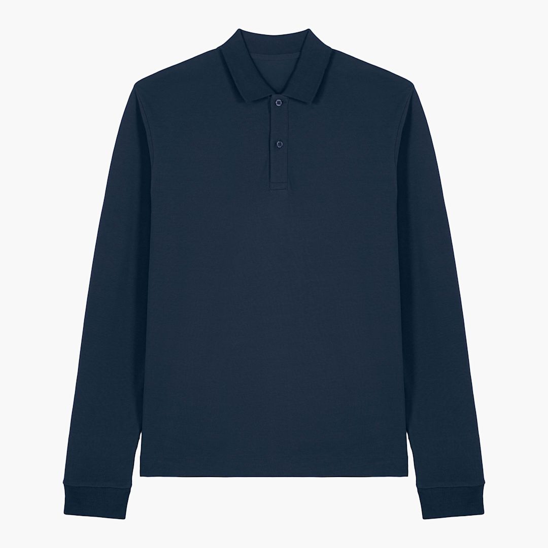 unisex polo long sleeve. Medium fit. Flat knit rib on collar. Front placket with 2 buttons in matching body colour. 100% Organic Ring Spun Combed Cotton. 240 GSM.
