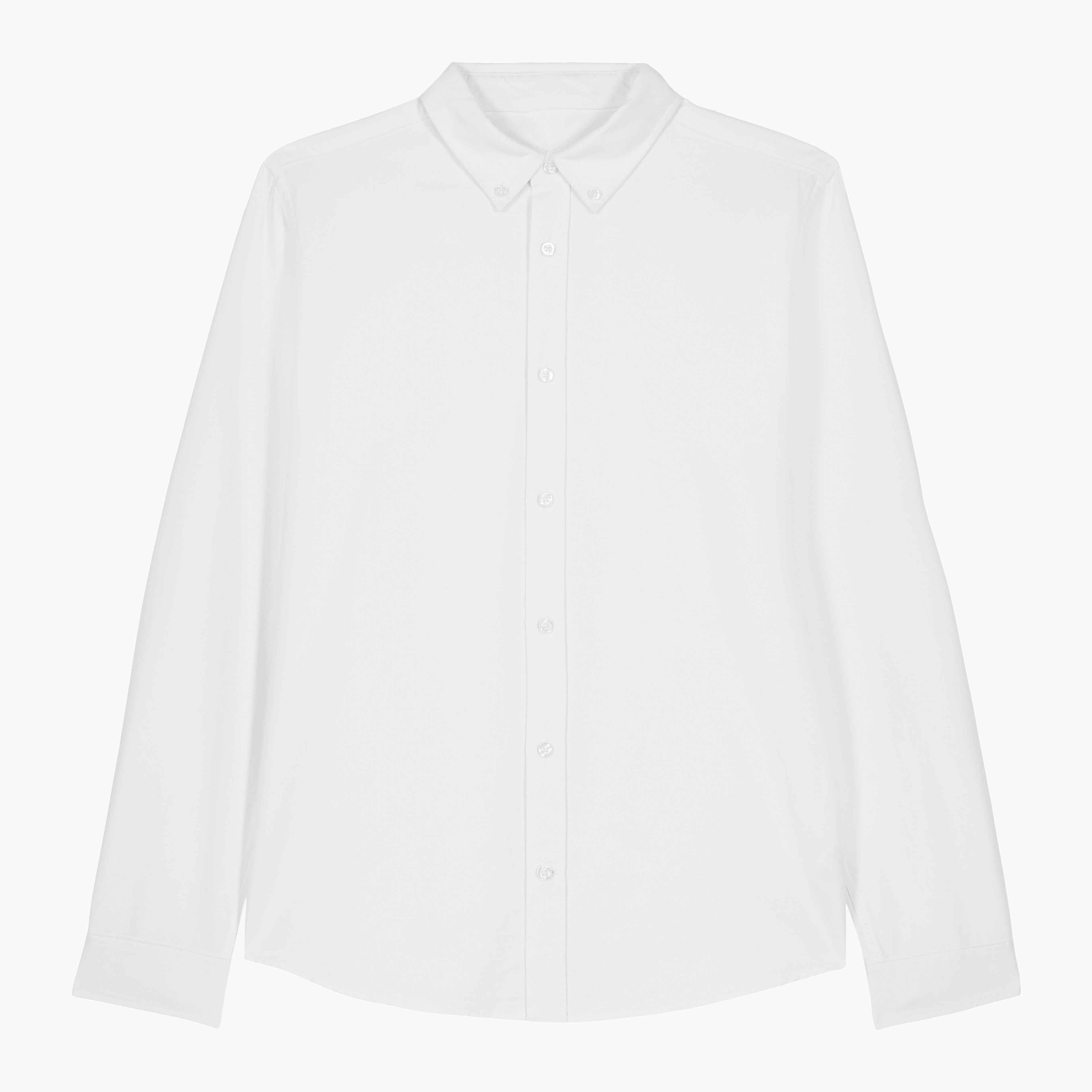 men's oxford shirt. medium fit. 100% Organic Ring Spun Combed Cotton oxford. 190gsm. Button down collar with single needle topstiches. Front placket with single needle topstitches on each side. Sleeve placket with one button. Cuff with two buttons. Rounded cuff corners. Double pleats at cuff seam.