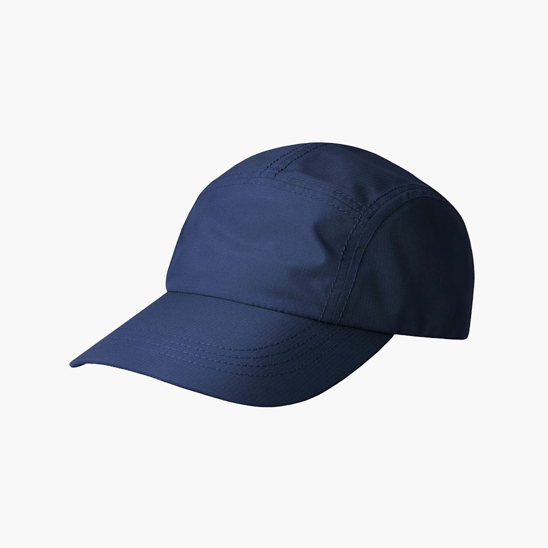 Outdoor hat in 100% recycled polyester ripstop. Heat sealed tapes for maximum waterproofing. Inside mesh lining and dry-tech sweatband in recycled polyester. Unstructured 5 panels and curved visor. Metal Sunday buckle closure.