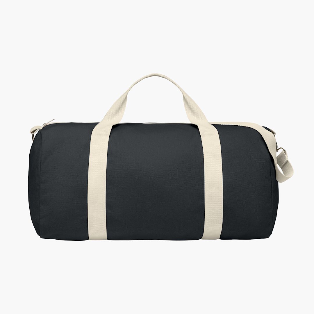 Duffle bag/bag in recycled material (60% recycled cotton, 40% recycled polyester). 320 gsm. with handles in natural-colored cotton fabric and an adjustable and removable shoulder strap.