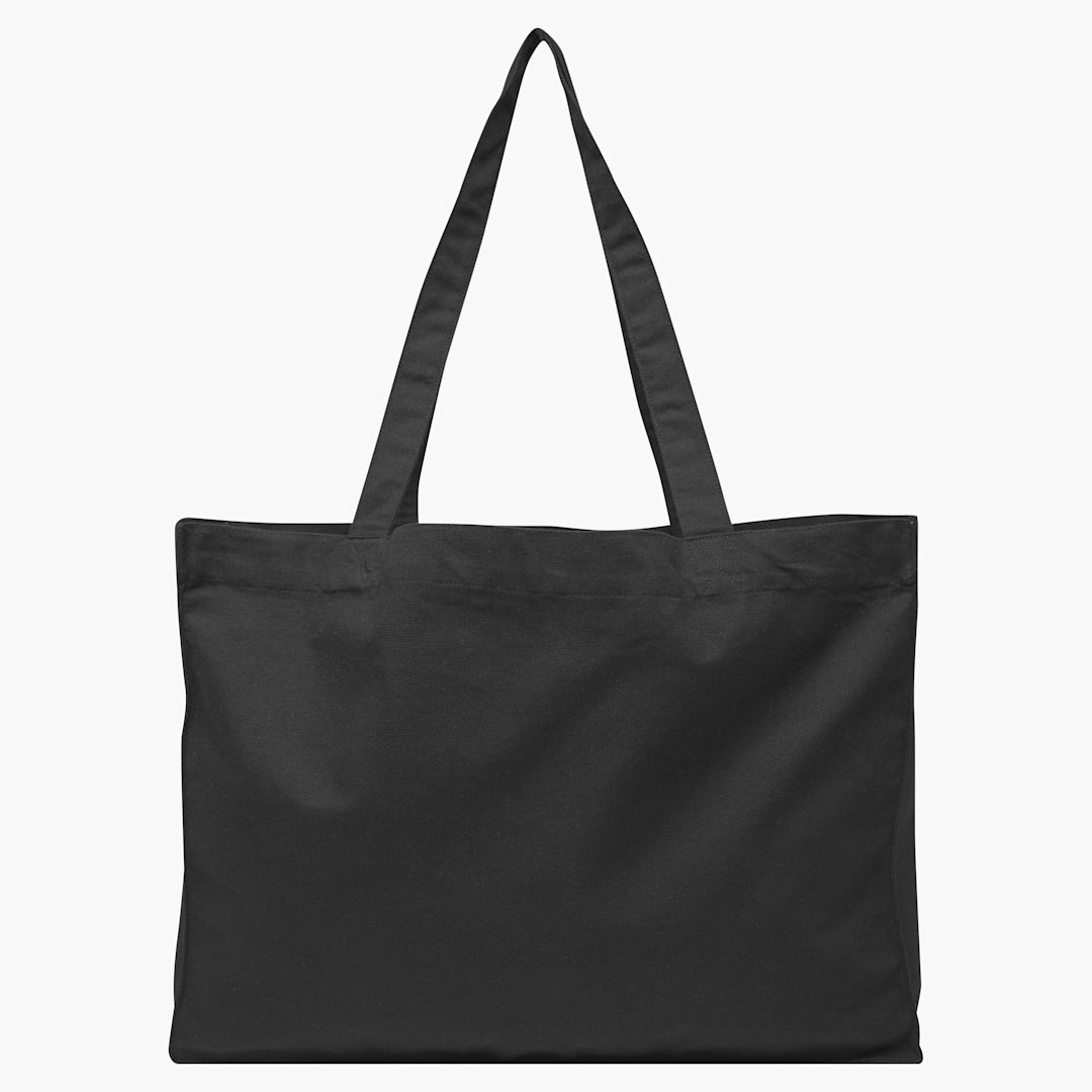 woven shipping bag. 80% recycled cotton + 20% recycled polyester. 300gsm. long handles with reinforced cross stitch. Side soufflet and base plate. handle length 70cm.