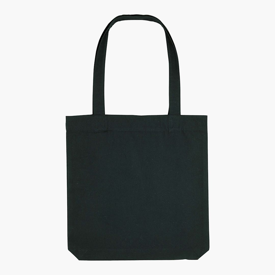 Woven tote bag. 80% recycled Cotton + 20% recycled Polyester. 300gsm. Long handles with reinforced cross stitch. Shaping seam at bottom to create volume. handle length 65cm