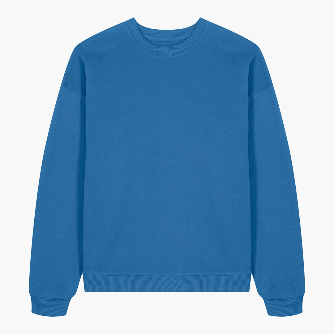 unisex oversized crew neck sweatshirt. 100% organic Ring Spun Combed cotton. 350gsm. 2x1 Rib at collar, sleeve cuffs and bottom hem. Double needles topstitches on all seams. Self fabric half moon at back neck.