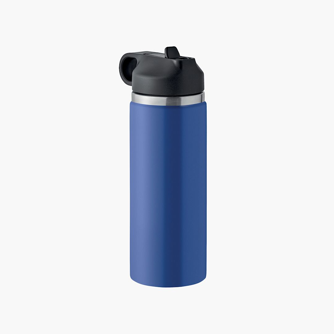 Recycled stainless steel double wall bottle. 90% recycled stainless and steel 10% stainless steel. insulated vacuum bottle with lid with PP grip handle and integrated straw built-in straw. Leak free. 500ml.