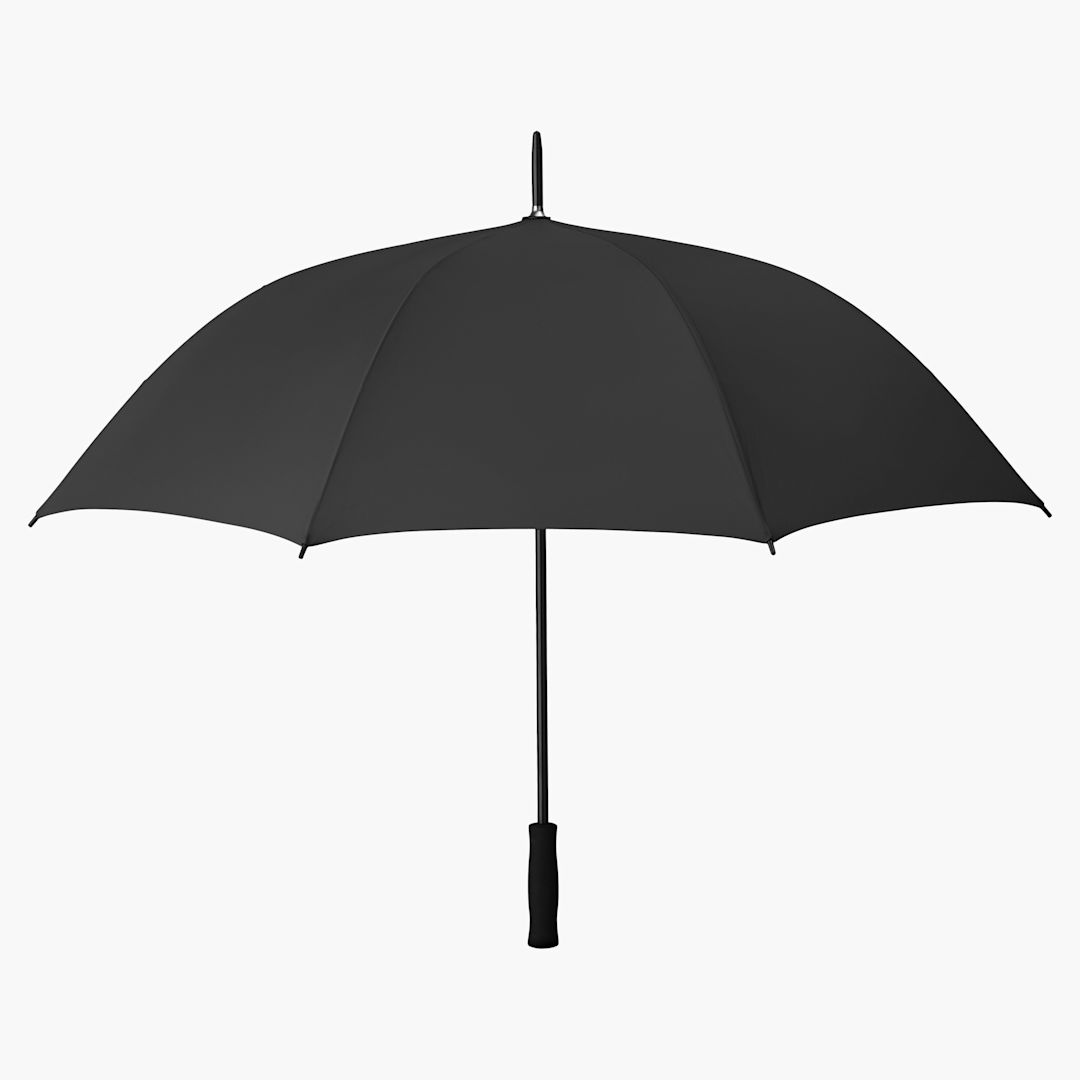 27'' Umbrella with automatic opening and manual closing. Black metal shaft with EVA handle and metal ribs with black plastic tips. Hood in 190T polyester.