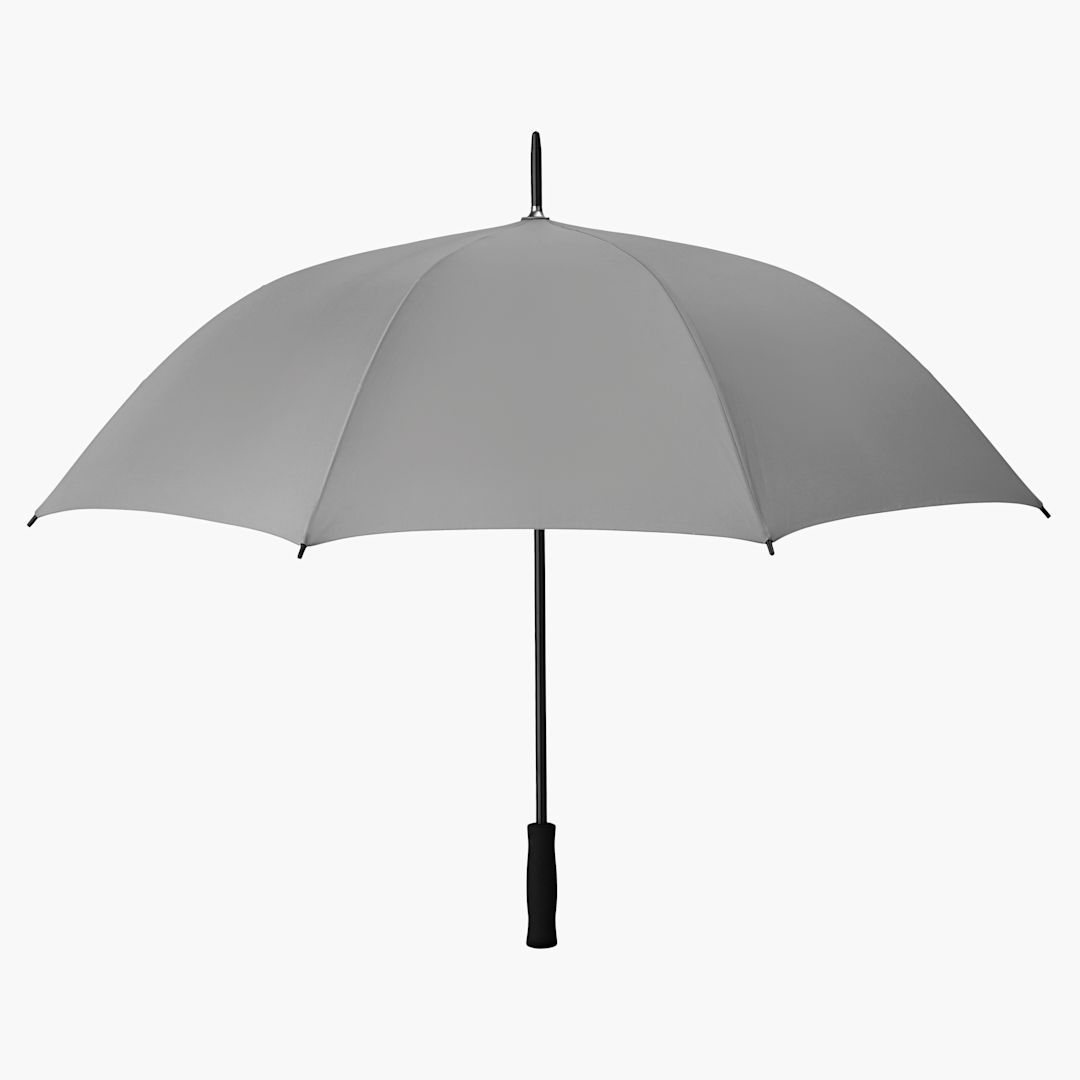 27'' Umbrella with automatic opening and manual closing. Black metal shaft with EVA handle and metal ribs with black plastic tips. Hood in 190T polyester.