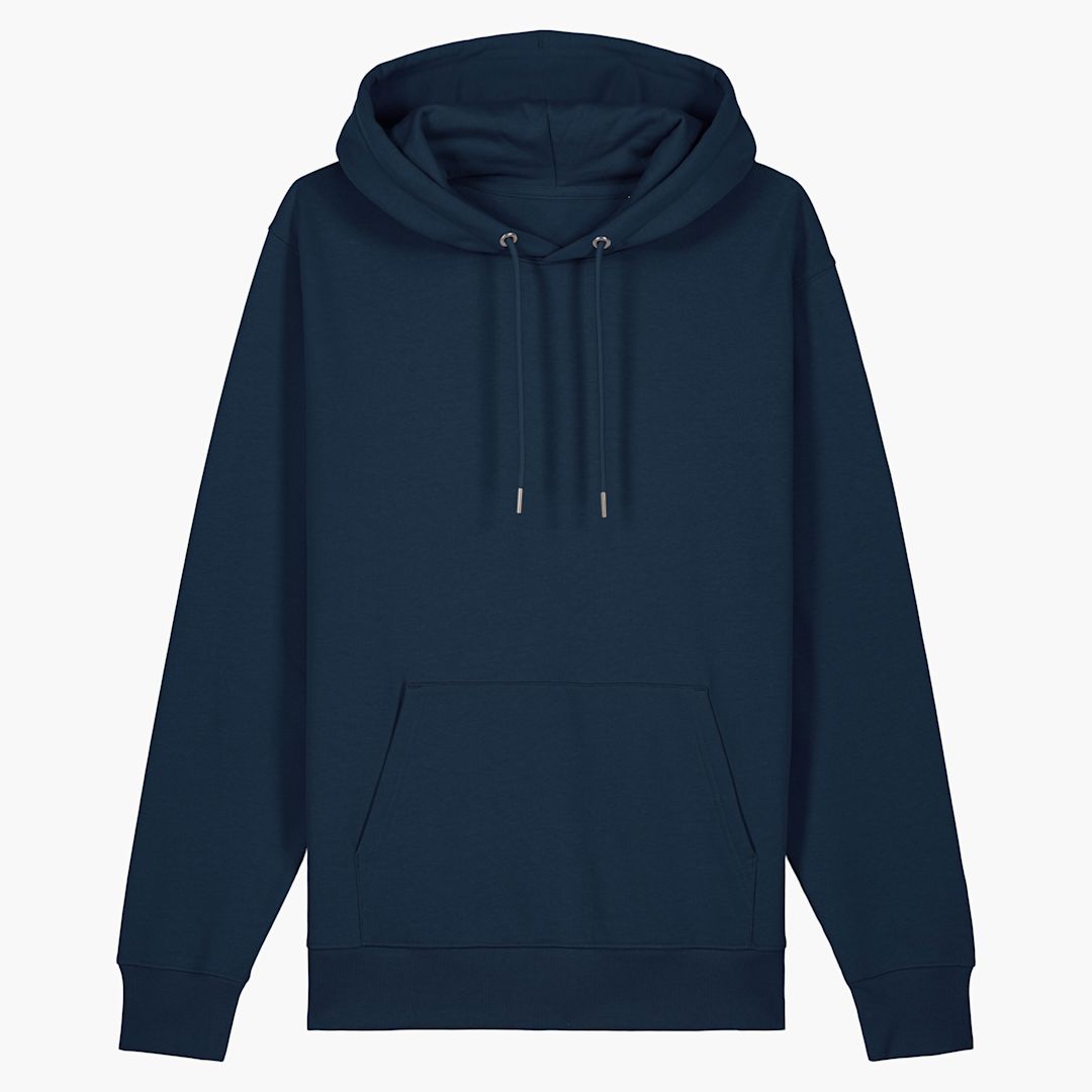 unisex hoodie sweatshirt. medium fit. 100% brushed organic Cotton. Double self fabric lined hood- Round drawcords in matching body colour. Closed end metal tipping and metal eyelets. Herringbone tape at insde back neck seam. Self fabric half moon at back neck.