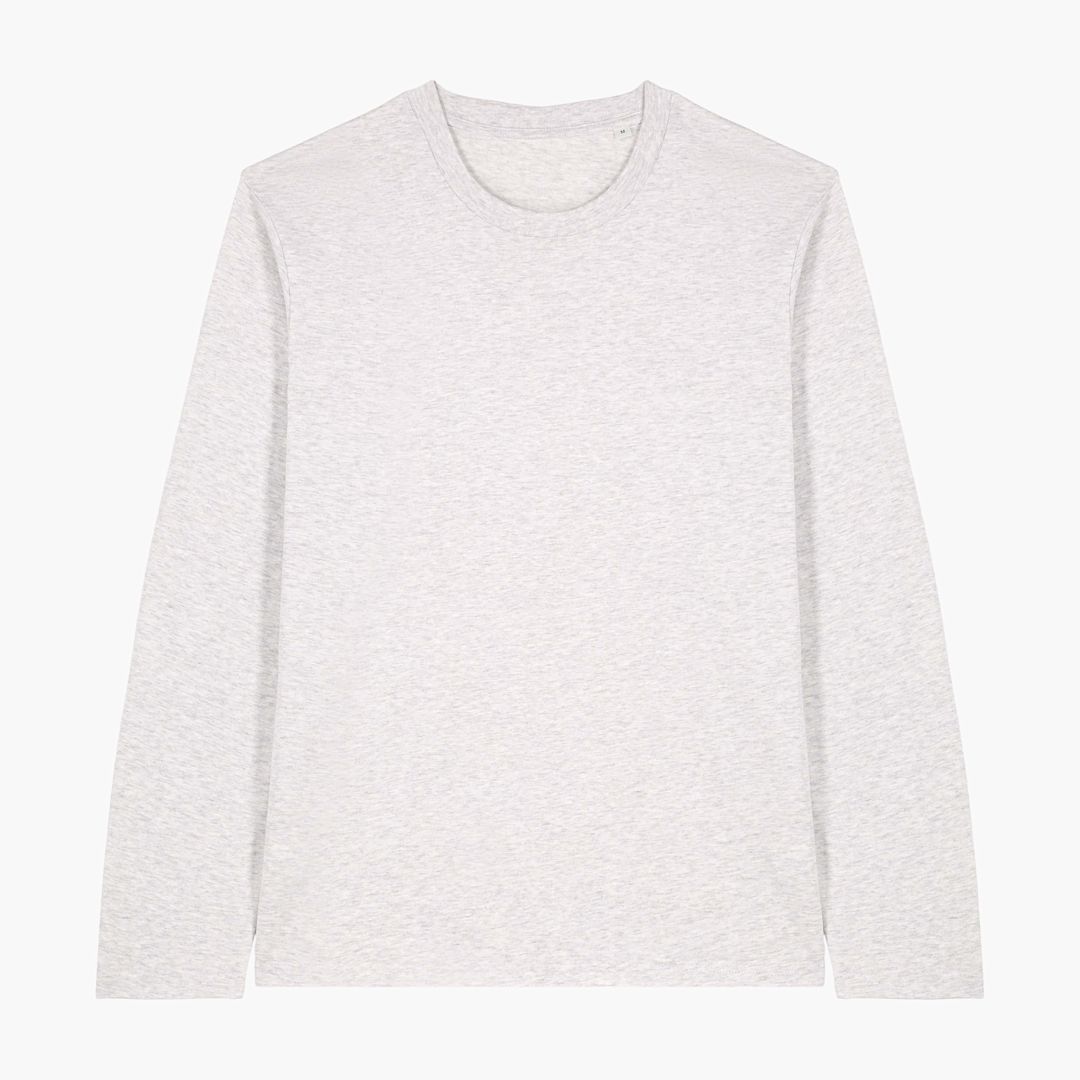unisex long sleeves t-shirt. no cuffs. Single Jersey, 100% organic Ring Spun Combed Cotton. Medium fit. 180gsm. Available in a lot of different colors.