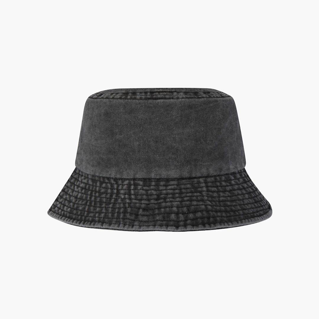 washed cotton bucket hat. made from a blend of 80% recycled cotton + 20% cotton. 245gsm. soft and relaxed feel. With a head circumference of 58 cm.