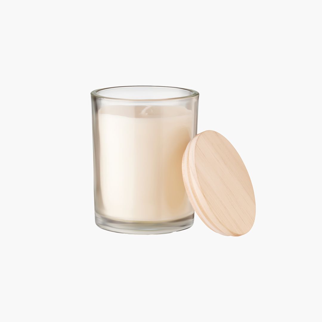 Vanilla-scented wax candle in glass with bamboo lid. Comes in a paper tube gift box. Burning time: 40 hours.
