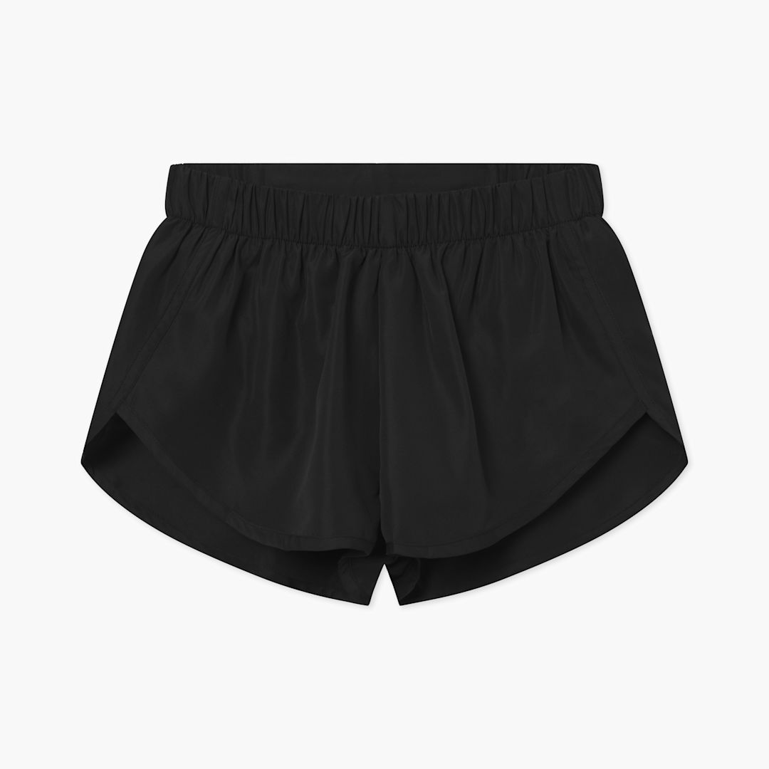 Lightweight women active shorts. 100% polyester. 80gsm. Elastic waist. Inner liner brief for support. High thigh length. Lightweight. Zip pocket to back for storing essentials.