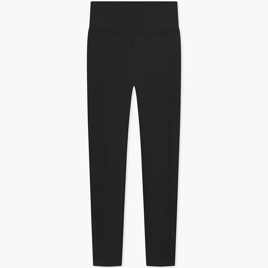 Full-length leggings. 80% Recycled polyester + 20% Elastane. 240 gsm. Soft-stretch fabric. Elasticated waistband. Black inner waistband and coin pocket. Side panels to legs with hidden insert pocket.