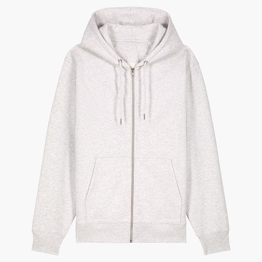 unisex zip hoodie. 100% Organic Ring Spun Combed cotton, Fabric washed. 350 GSM. medium fit. Kangaroo pocket at front.